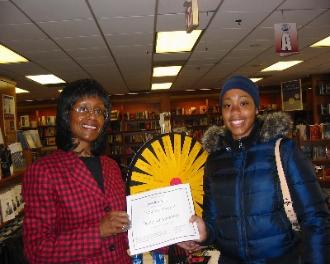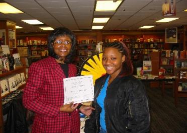 | Spin-a-Story winner Shanae E. of Mesquite, TX with author |